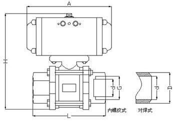 氣動三片式球閥主要外形及連接尺寸