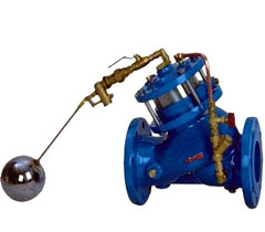 當水塔(池)的水面上升至設定高度時,浮球浮起關閉浮球閥,控制室水壓升高推動主閥關閉,供水停止。當水池水面下降后,浮球閥重新開啟,控制室水壓下降,主閥再次開啟繼續(xù)供水,保持液面的設定高度。