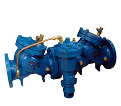HS41XA帶過濾防污隔斷閥由兩個隔開的止回閥和一個液壓傳動到泄水閥組成,第一個止回閥閥體內(nèi)裝有過濾網(wǎng)。由于止回閥的局部水頭損失,中間腔內(nèi)的壓力始終低于入水口的壓力。這個壓差驅(qū)使泄水閥處于關(guān)閉狀態(tài),管路正常供水。在壓力異常時,(即出口端壓力高于中堅腔),即使兩個止回閥都不能反向密封,安全泄水閥也能自動開啟將倒流水泄空,并形成空氣隔斷,保證上游供水衛(wèi)生安全。