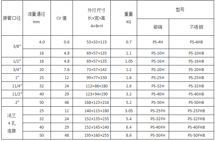 PS常開型直動式二位二通電磁閥參數(shù)表