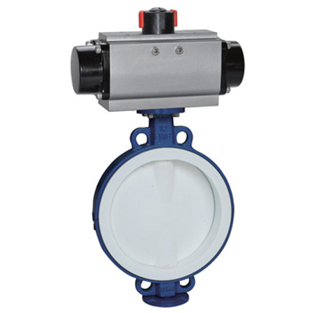 全襯氟氣動(dòng)蝶閥由內(nèi)襯PTFE蝶閥(閥體和閥板均襯PTFE)和氣動(dòng)執(zhí)行器組成,配合二位五通電磁閥或者二位三通換向電磁閥可以起到氣動(dòng)閥門的開關(guān)切斷作用。再配合電氣定位器輸入4-20mA可以起到流量調(diào)節(jié)作用。