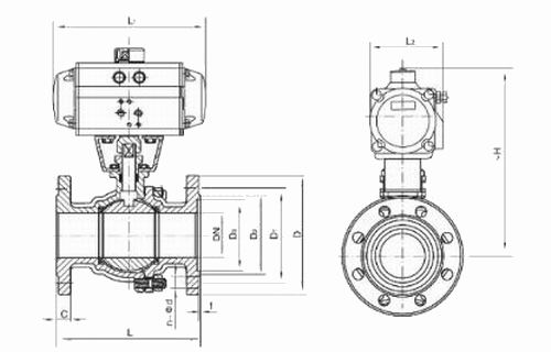 進(jìn)口氣動法蘭球閥外形尺寸--