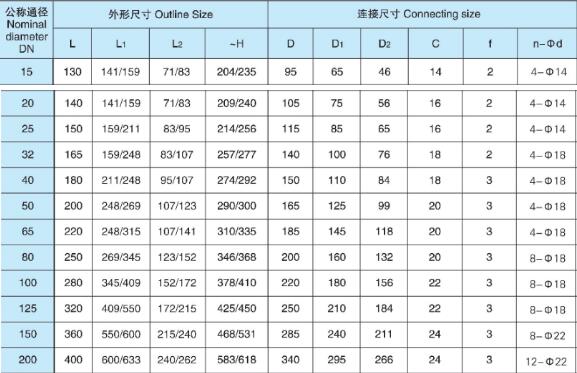 | 公稱通徑DN(mm) | 15 | 20 | 25 | 32 | 40 | 50 | 65 | 80 | 100 | 125 | 150 | 200 |