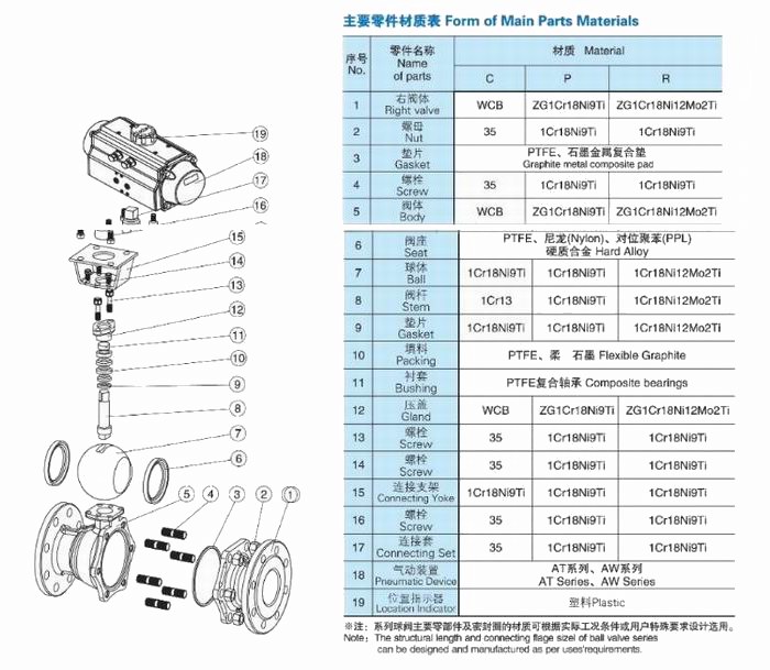 進(jìn)口氣動法蘭球閥零件材料--