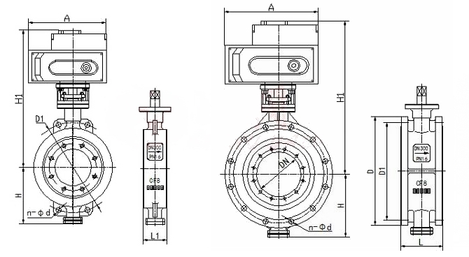 進(jìn)口電動(dòng)金屬硬密封蝶閥外形尺寸--