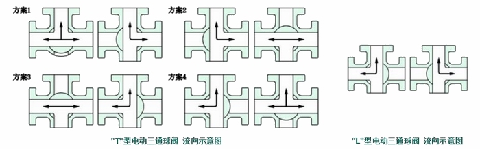 三通球閥分L型和T型,L型三通球閥適用于介質流向的切換,能使相互垂直的兩個通道連通:T型電動三通球閥適用于介質的分流、合流或流向 切換,T型孔道可以使三個通道互相連通或使其中兩個通道連通,電動三通球閥一般采用三個閥座結構,亦可根據(jù)用戶要求采用四閥座結構