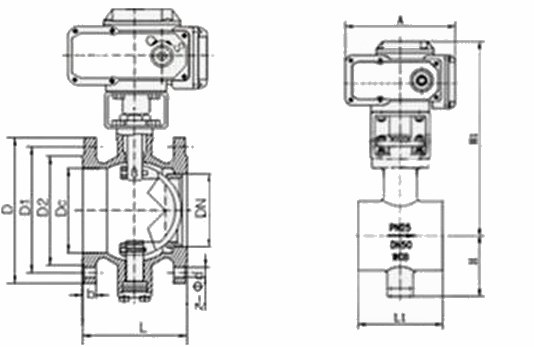 進口電動V型球閥外形尺寸--