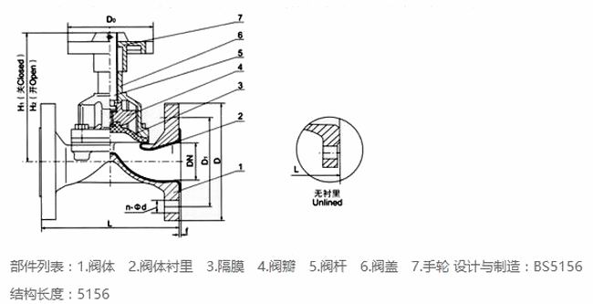 進口無襯隔膜閥外形尺寸--