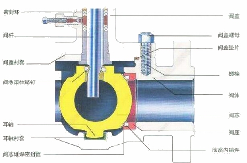 8.手輪轉(zhuǎn)動(dòng)的最后幾圈,閥桿底部的角形平面機(jī)械的楔壓迫球芯,使其緊密地壓在球閥上。