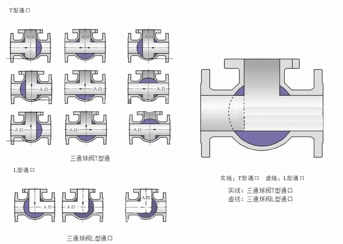 T形三通球閥用于介質(zhì)分流、合流及流向切換,T形三通可以使三個通道相互連通或使其中的兩個通道連通。