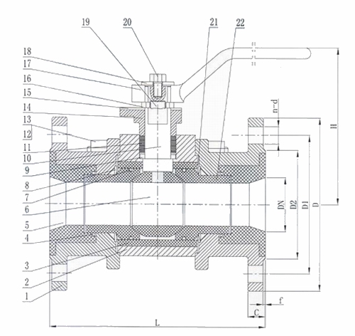 1.端閥蓋:WCB 2.中體:WCB 3.中體套:工程陶瓷 4.O型密封圈:氟橡膠 5.法蘭套:工程陶瓷 6.球體:工程陶瓷 7.O型密封圈:氟橡膠