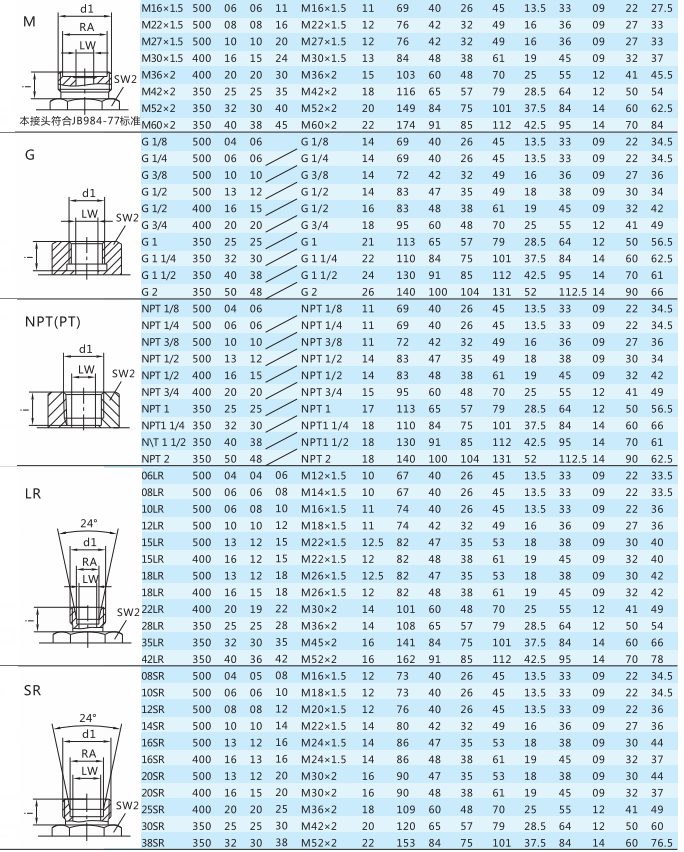 連接:M、G、LR、SR、PT、NPT;