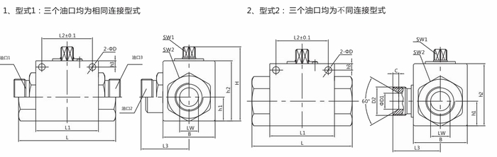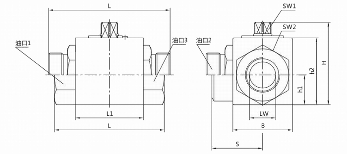 進口二位三通高壓球閥外形尺寸--
