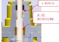 1 、丁晴橡膠 + 彈簧損壞( 1 )點(diǎn) ; 2 、閥桿與閥桿螺母的螺紋有損傷或積有污物 . |