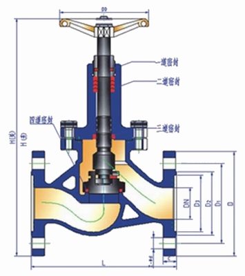ALSO氨用截止閥結(jié)構(gòu)全部采用精鑄閥體,暗桿倒密封形式,V型成型的四氟為動密封,以填料壓著為初始密封、隨著介質(zhì)壓力上升而填料密封性能增強,具有自密封功能,閥瓣密封面結(jié)構(gòu)成凹槽機壓聚四氟乙烯O型圈,構(gòu)成雙重密封,達到無介質(zhì)內(nèi)外漏以及操作輕便的效果。