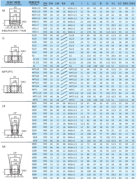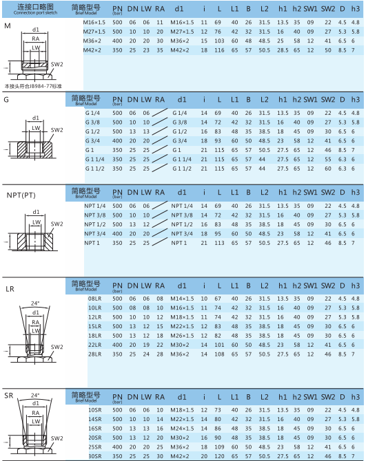 連接方式:M、G、LR、SR、PT、NPT;