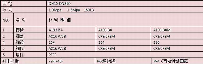 進口襯氟截止閥材料明細
