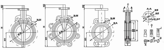 進口凸耳式中線蝶閥外形尺寸--