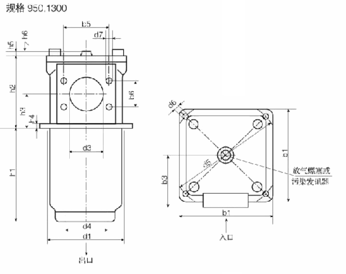 2.上端蓋設(shè)有污染發(fā)訊器接口。染發(fā)訊器用于過濾器濾芯被污染物堵塞時(shí)發(fā)出訊號指示,以便更換濾芯,確??煽康墓δ芗氨Wo(hù)易污染液壓元件和設(shè)備免受磨損
