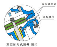 2.采用主副密封結(jié)構(gòu),主密封閥隨著介質(zhì)的壓力大小自動打開或關閉。副密封閥盤受到控制室介質(zhì)的影響,隨水錘峰值到達時間的長短自行關閉,從而消除水擊現(xiàn)象。