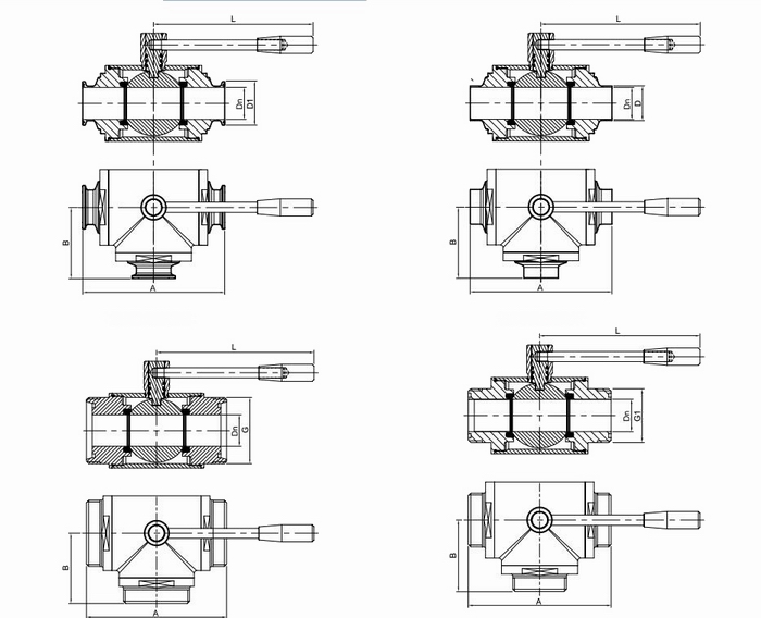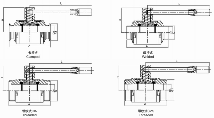 3.衛(wèi)生級三通球閥:結構形式有T型及L型兩種,-個閥體,三個閥蓋,三個PTFE閥門座,球體,軸芯元件以及一個手柄(或氣動頭元件)構成,可增加清洗排泄口