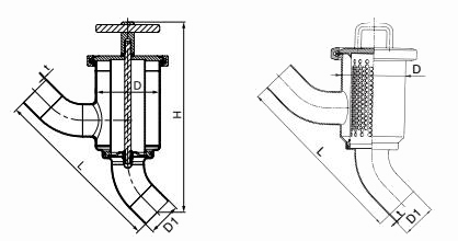 1.衛(wèi)生級角式過濾器進口與出口成90°垂直,進口是缸體同心口,出口是缸體垂直口,通常安裝在兩條平行管道上