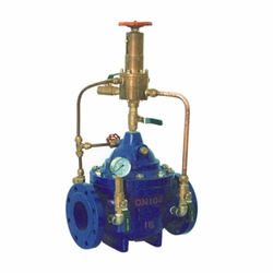 2.持壓閥:可維持主閥上游供水壓力于某一設(shè)定直以上,以保障主閥上游的供水壓力,主要用于城市低壓供水區(qū)域。
