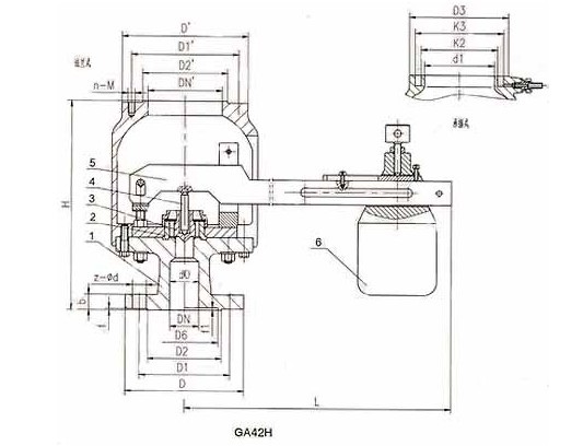 【GA42H單杠桿安全閥-主要外形尺寸】